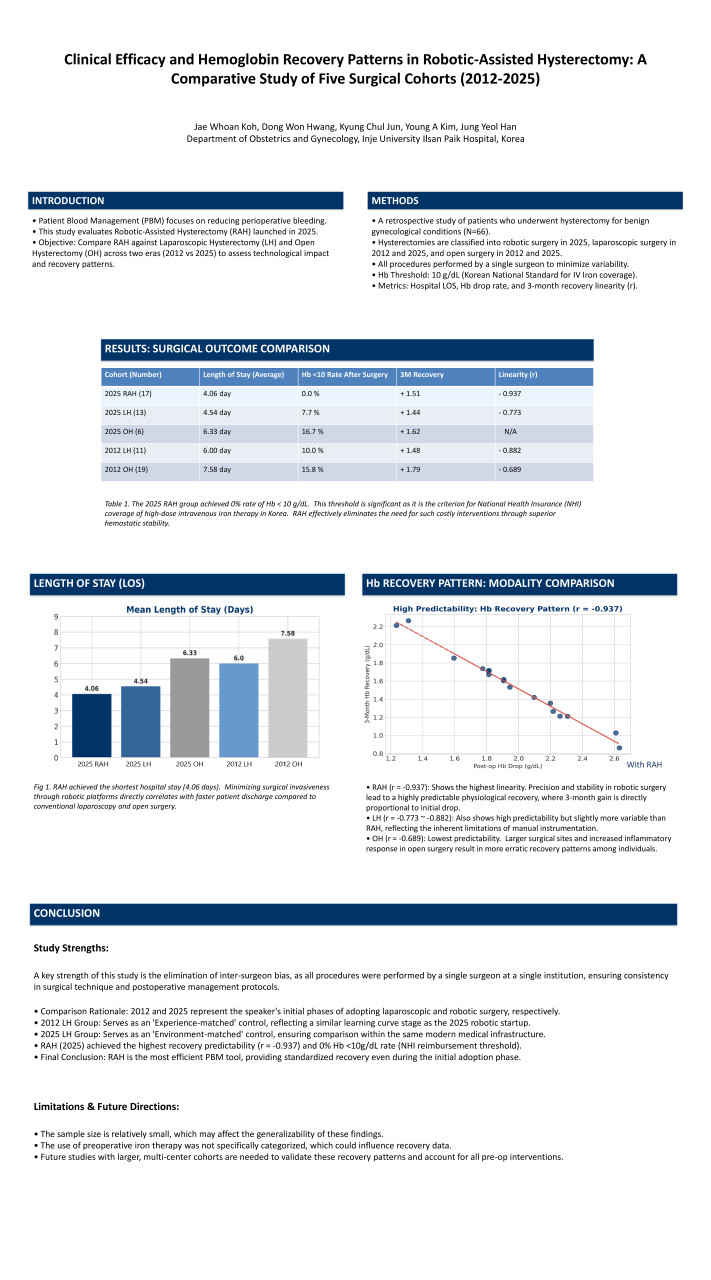 Clinical Efficacy and Hemoglobin Recovery Patterns in Robotic-Assisted Hysterectomy: A Comparative Study of Five Surgical Cohorts (2012-2025) (EP1T4_5)