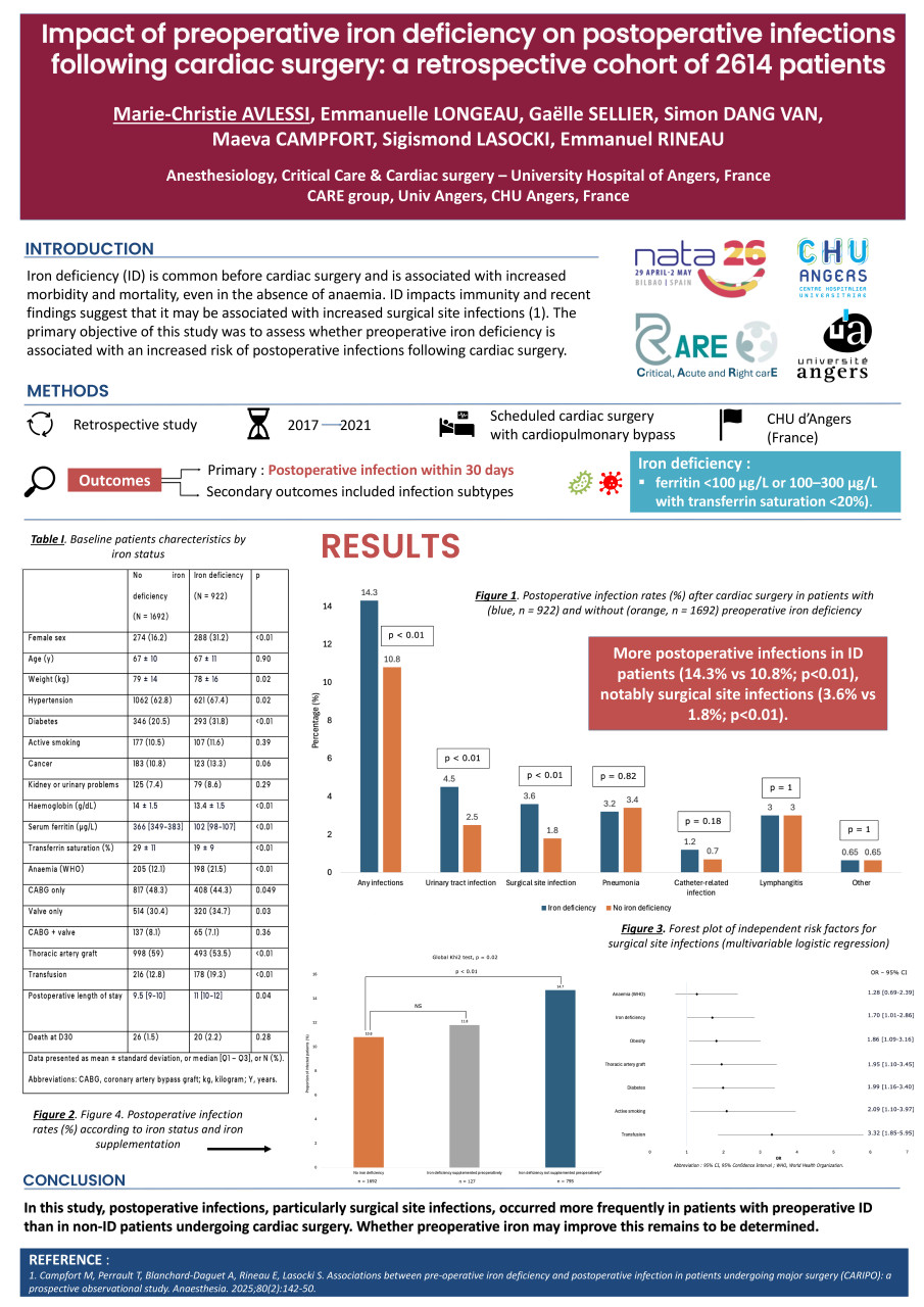 Impact of preoperative iron deficiency on postoperative infections following cardiac surgery: a single-center retrospective study (EP1T5_1)