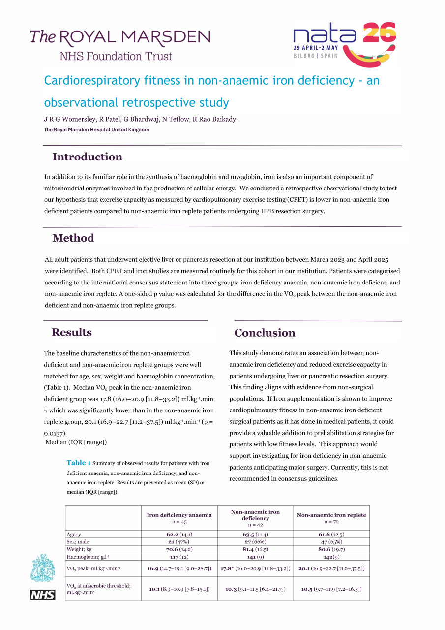 Non-anaemic iron deficient patients undergoing major hepato-pancreato-biliary surgery have lower cardiopulmonary fitness as compared to non-anaemic iron replete patients. (EP2T5_6)